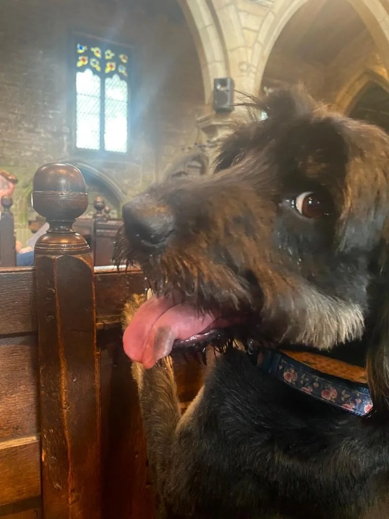 Revd Fiona’s dog Cassie joins the Vicar in Tideswell church regularly