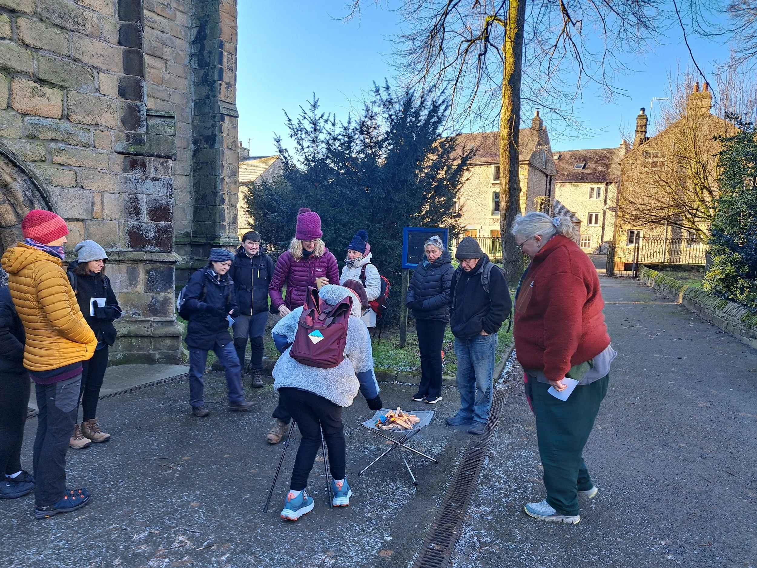 Pilgrims set out from Cressbrook Church guided by Faye and Sarah Jane.